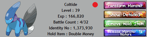 Only a few Monsters transform with this method. You will need to go to a certain map to transform, or level up in a certain map then transform. One of the Monsters that uses this method is Dahunown, as shown below.