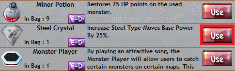 Evolving Trebass with a Steel Crystal. Note the level up before transformation.